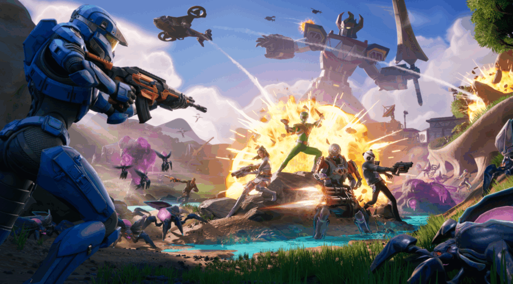 「Shock ‘N Awesome(ショックン・オーサム)」は、チャプター6シーズン4にあたる大型アップデートで、島全体を巻き込んだ侵略者 vs 駆除部隊の戦争がテーマになっています。