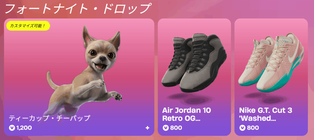 ショップ購入スキンはアイテムショップに日替わりや期間限定で並ぶスキンです。ゲーム内通貨のV-Bucksで購入でき、価格はスキンのレア度に応じて異なります。