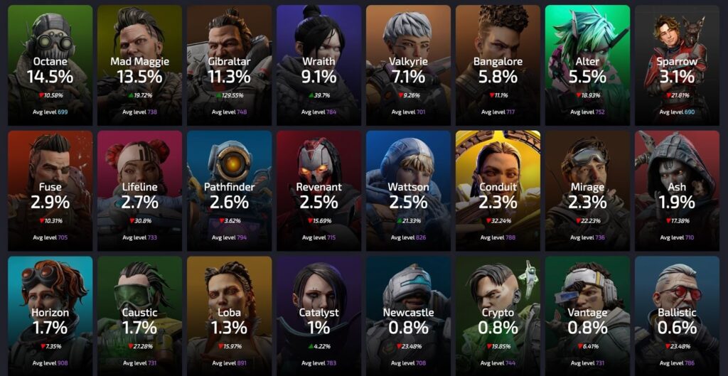 ここでは、APEXのシーズン28 スプリット2におけるキャラピック率の傾向についてご紹介します。