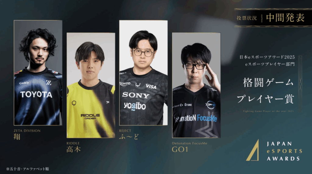 国内eスポーツ界の祭典「日本eスポーツアワード2025」のファン投票中間発表が公開されました!