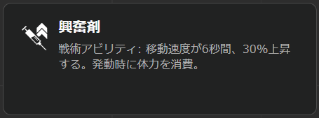 戦術アビリティは興奮剤で使用すると移動速度が大幅に上昇します。