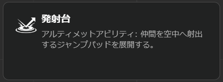 アルティメットアビリティは発射台でジャンプパッドを投げ、使用者は大ジャンプすることができます。