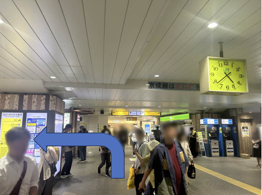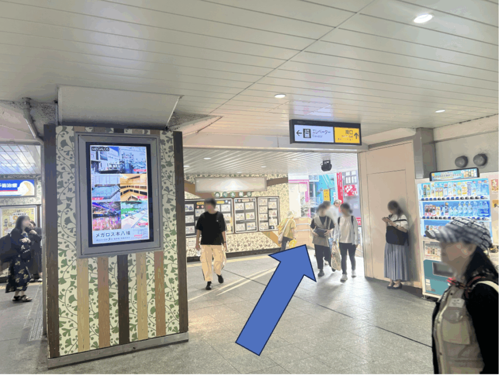 1.改札を出て左へ進み、突き当たりを右へ進みます。