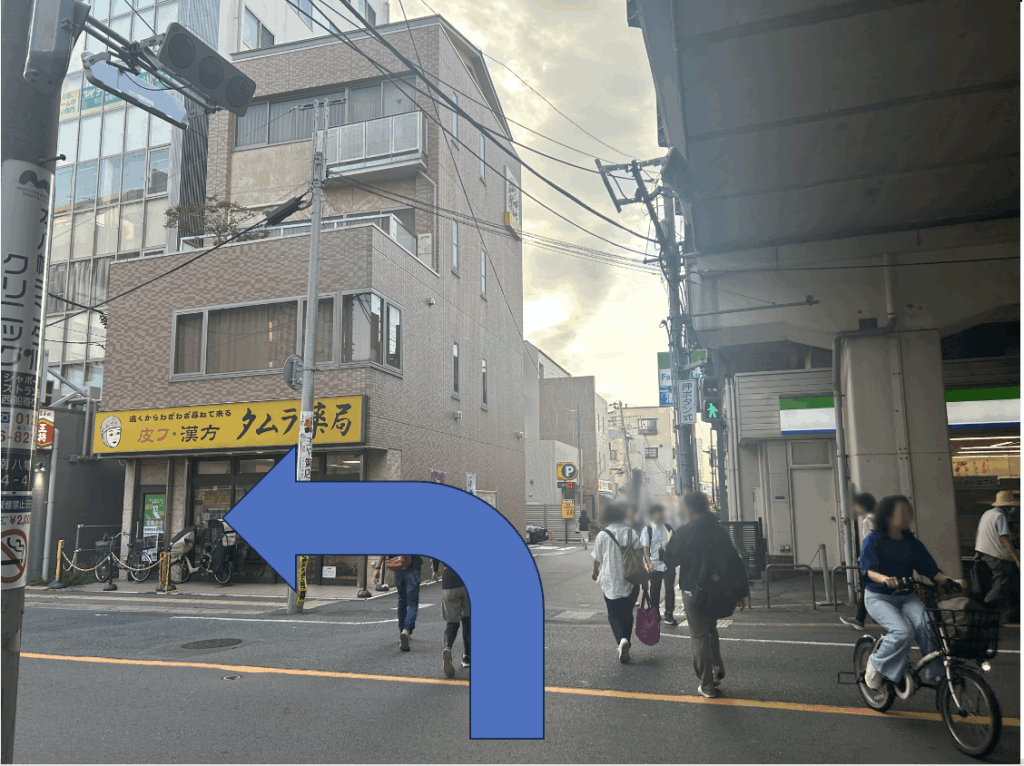 3.信号とファミリーマートが見えてくるので、左に進みます。
