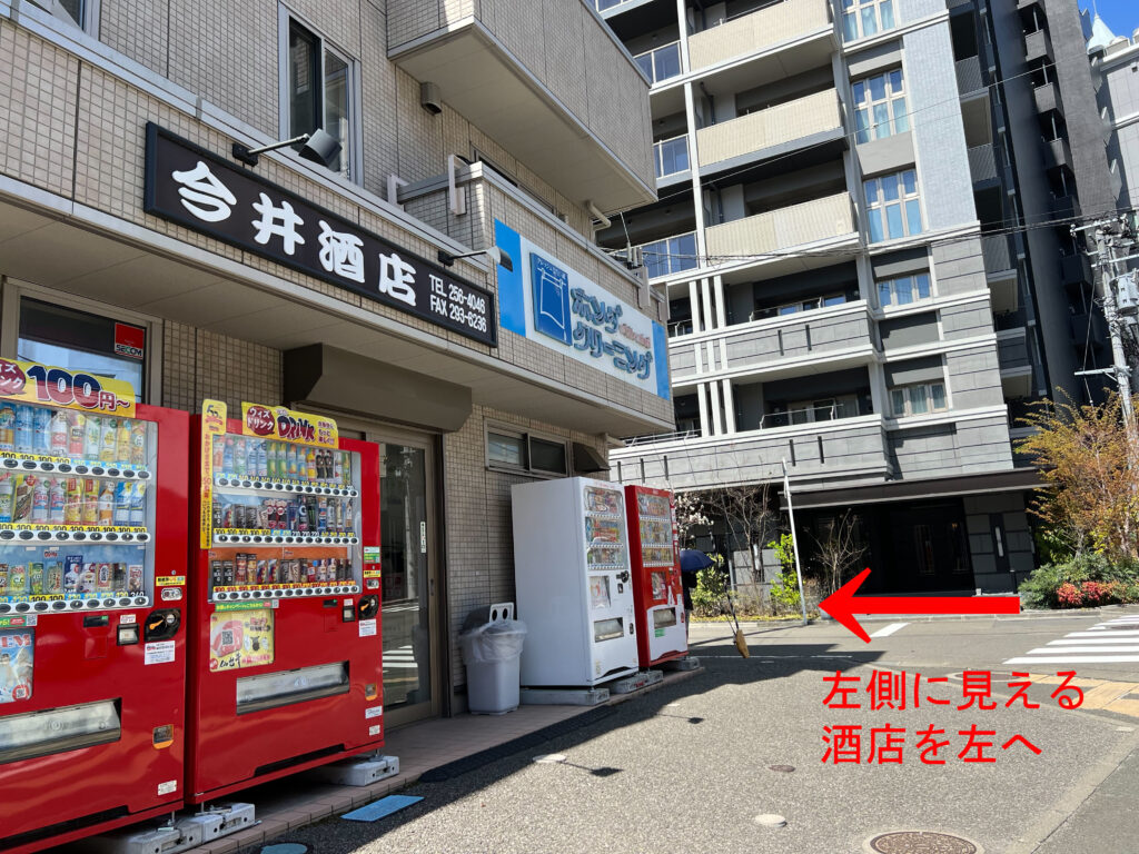 5.まっすぐ進み、左側のお酒屋さんを左へ