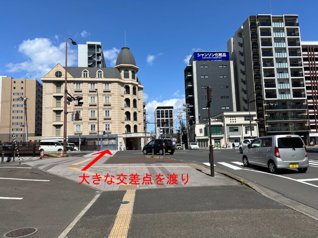 4.まっすぐ進み、大きな交差点を渡る