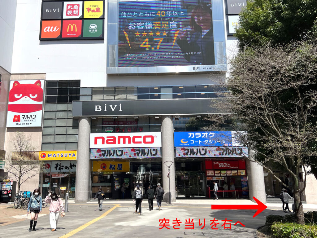 2.BiVi方面へまっすぐ進み、突き当りを右へ