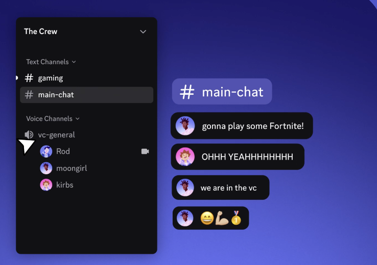 サーバーに参加すると、テキストチャットやボイスチャットを利用できるようになります。
